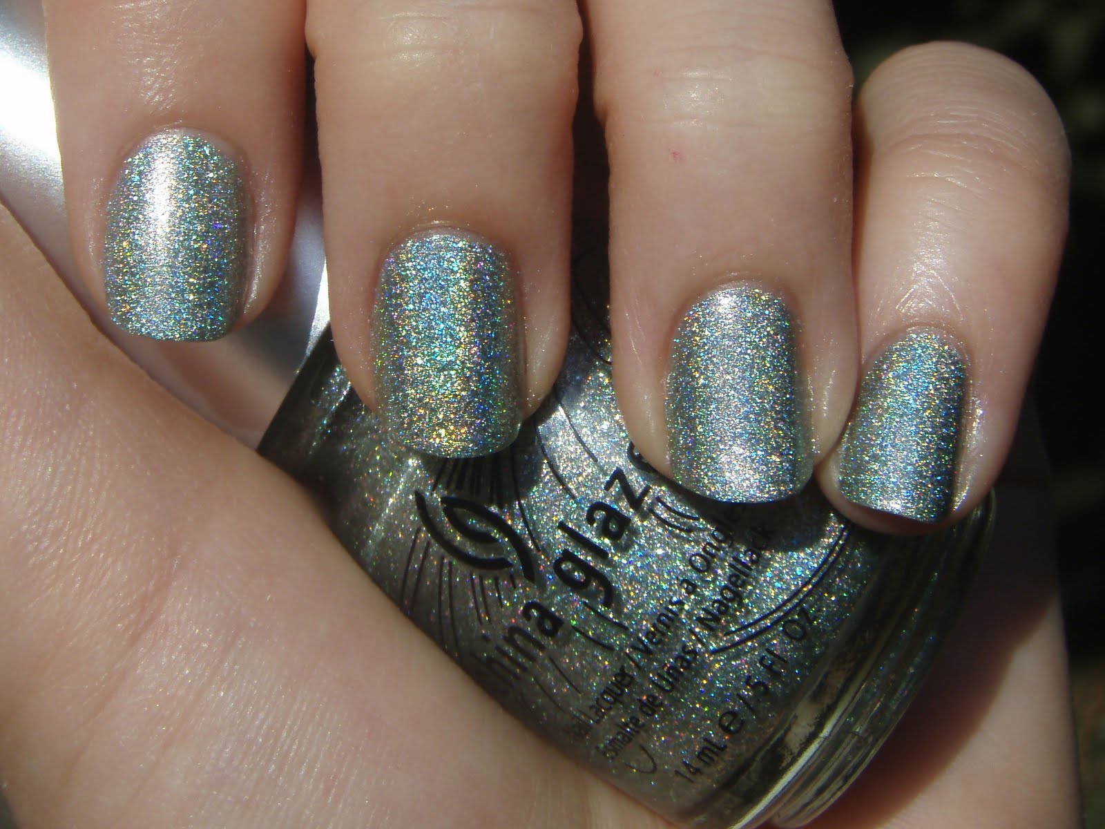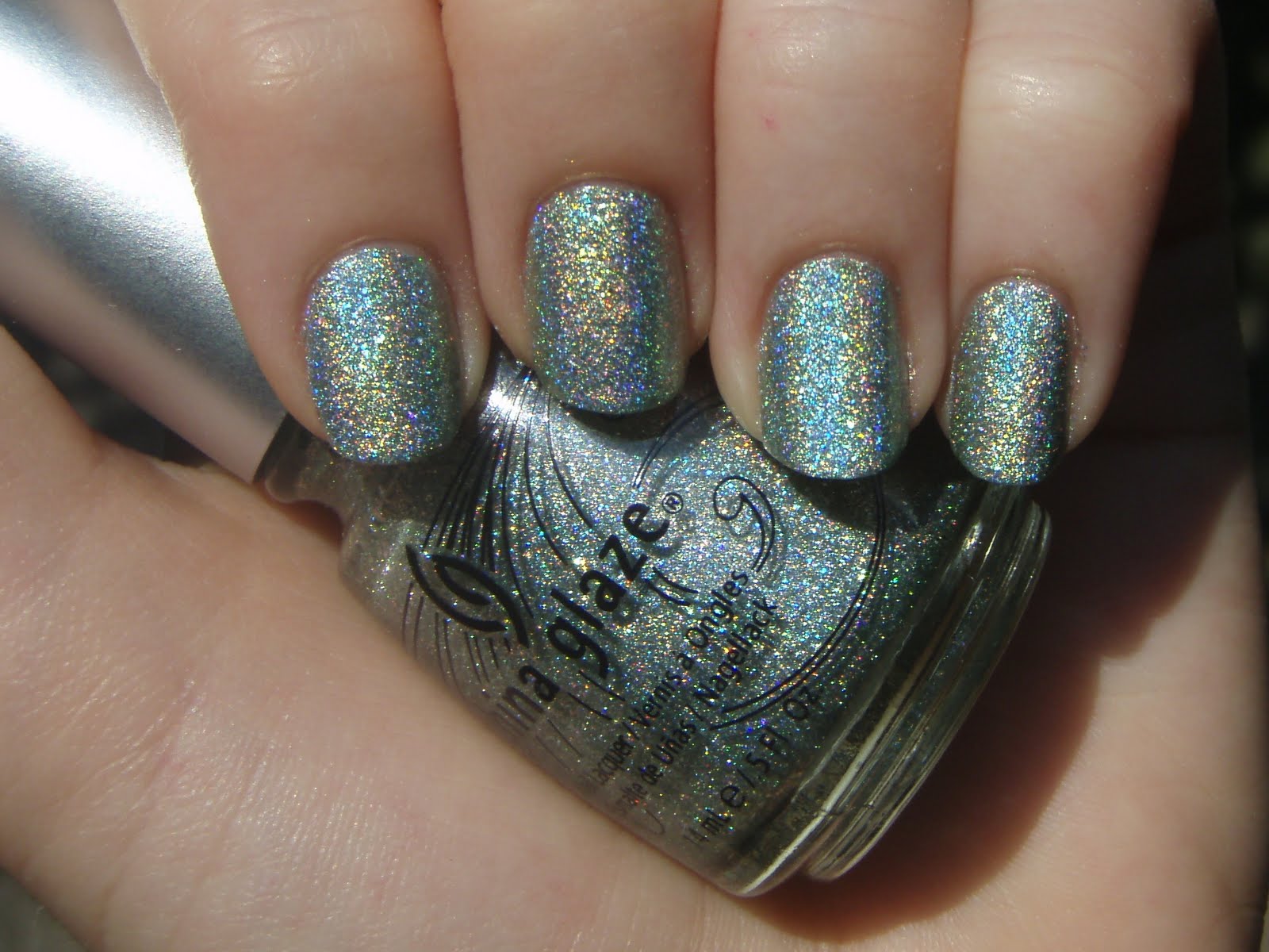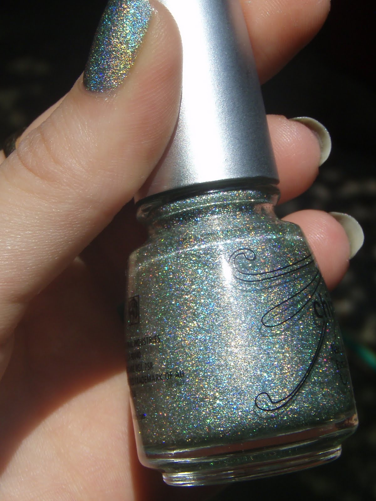 I was most excited about a holo from China Glaze’s Kaleidoscope collection called He’s Going In Circles. It’s a gorgeous sea green holo and I couldn’t stop looking at my hands while I had it on today! I took a lot of pictures so enjoy!