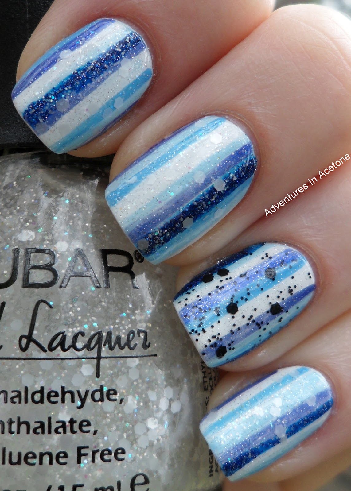 I'm jealous of these adorable little glitters! Looks absolutely fantastic over the stripes!