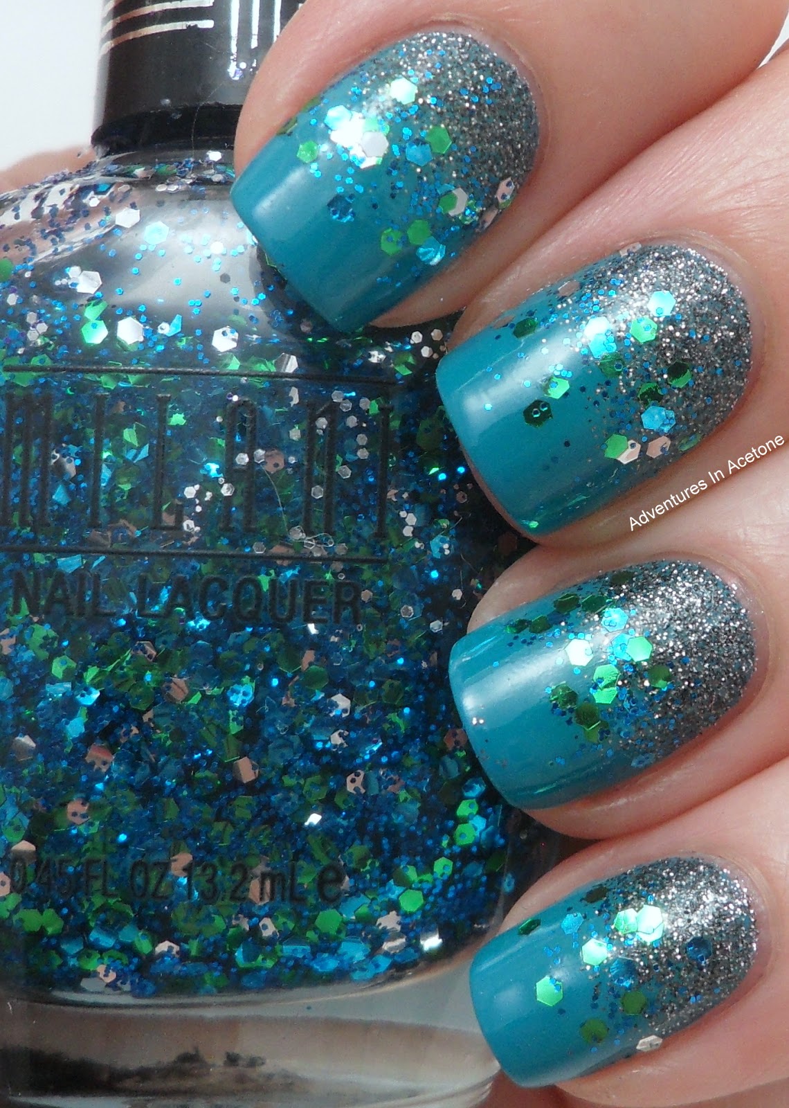 Dabbed Milani Teal Jewel FX Glitter in the middle gradiented toward the tips with a torn sponge