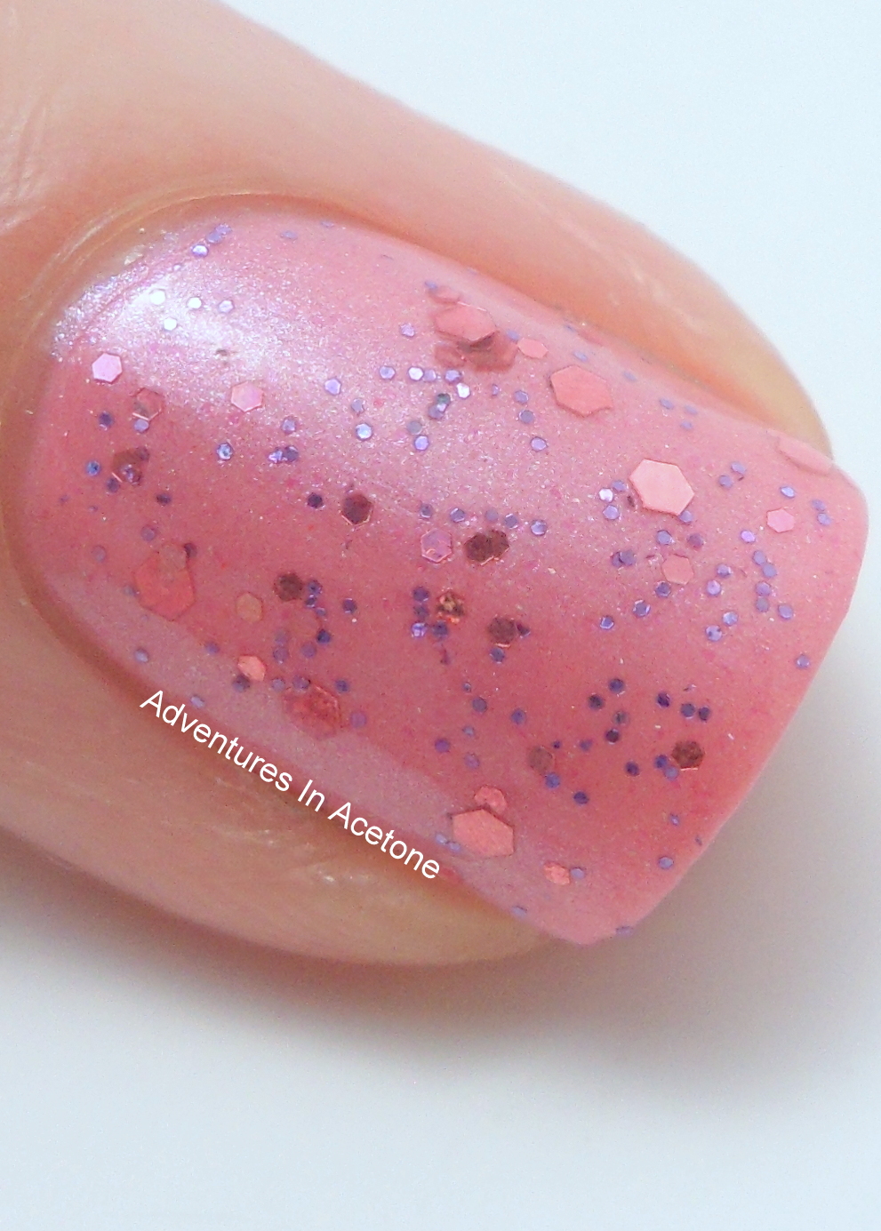 You can see in this macro that there are teeny bits of darker pink as well as a gorgeous shimmer throughout!