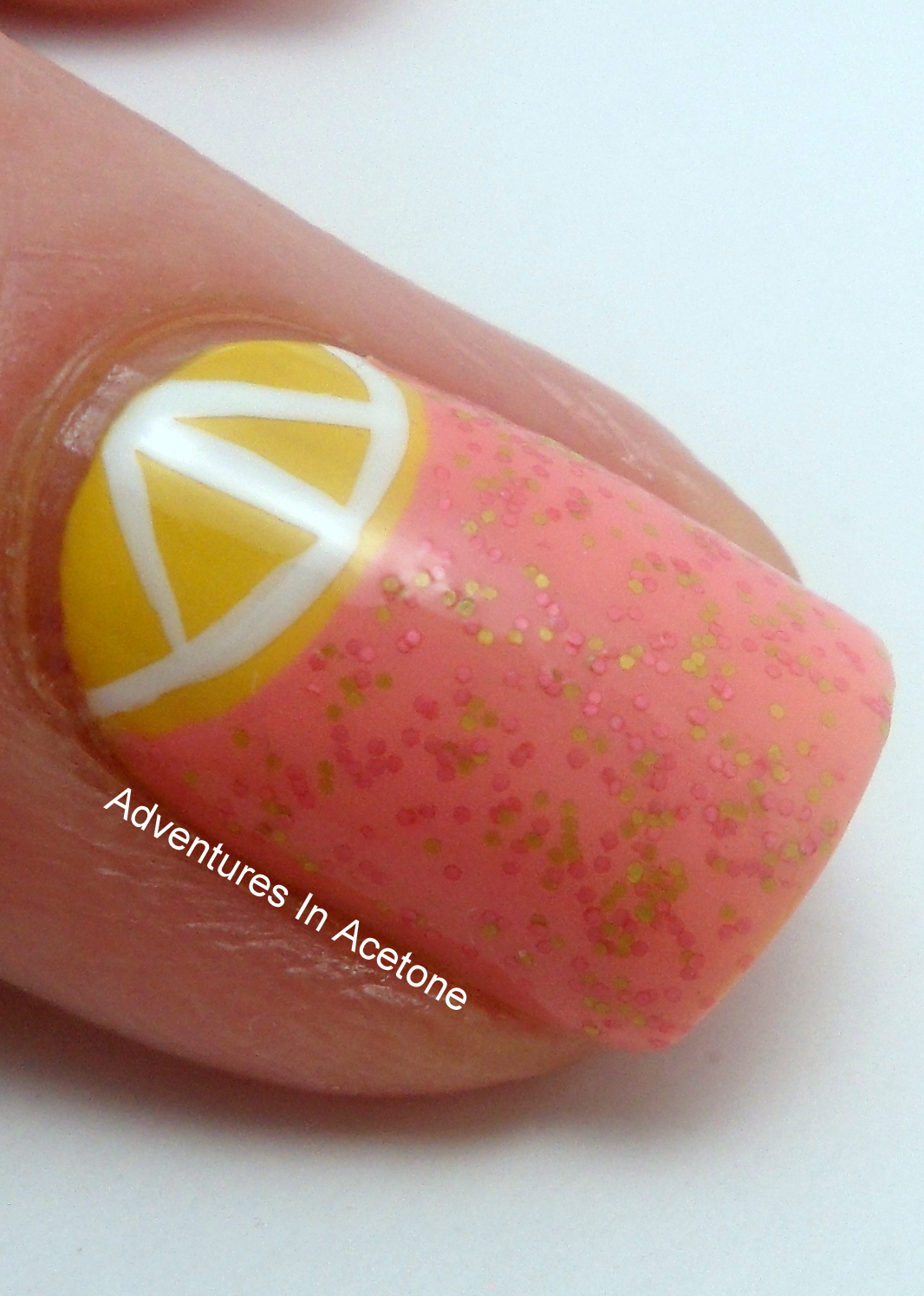 Hello readers! I have a cute and simple nail art post for you today. I received Amy’s Nail Boutique Pink Lemonade in a swap and decided to do some “pink lemonade” nail art!