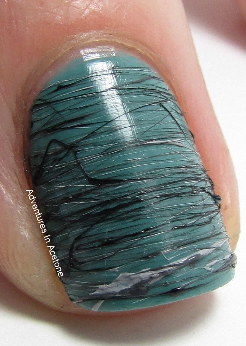 I sugar spun light gray, charcoal gray, and black over a dusty teal color and really like how it turned out! Are you seeing a texture theme of this week as well? I didn’t top coat this because I wanted the texture to be a big part of the mani.