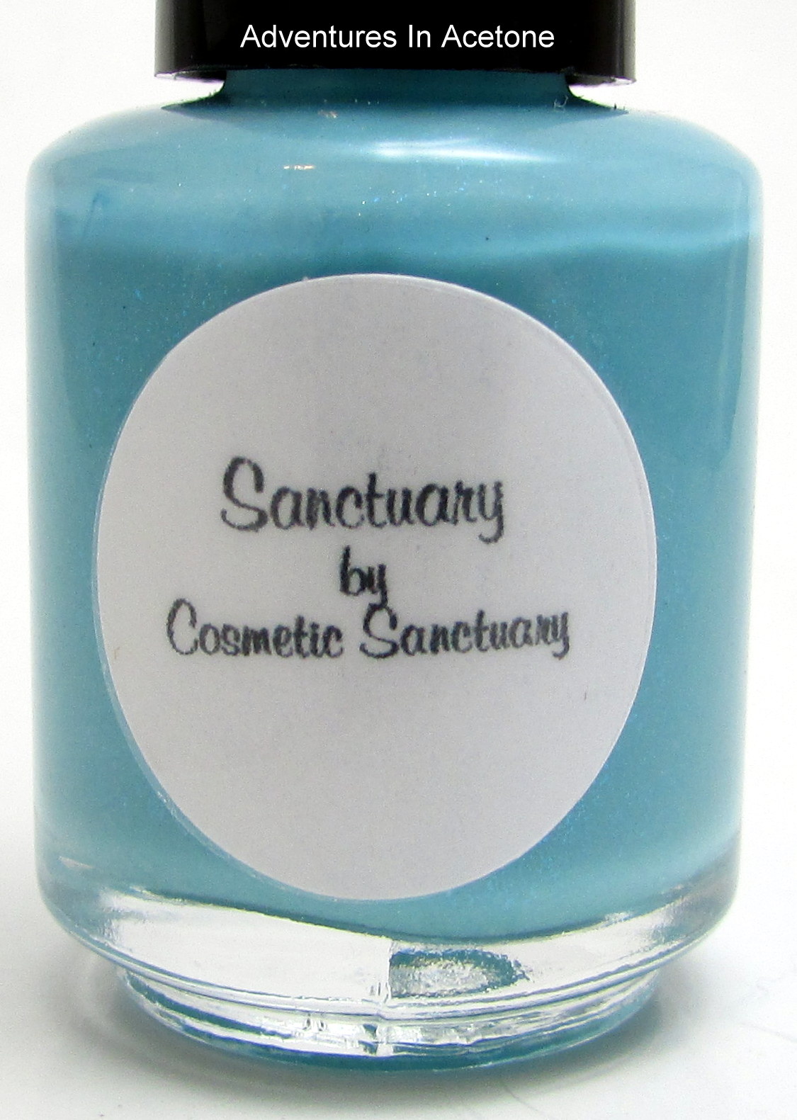 Sanctuary is a, “Soft aqua blue with aqua and silver shimmer.” I’m showing two easy coats with no top coat below. Gorgeous, another winning shimmer from Maya Cosmetics.