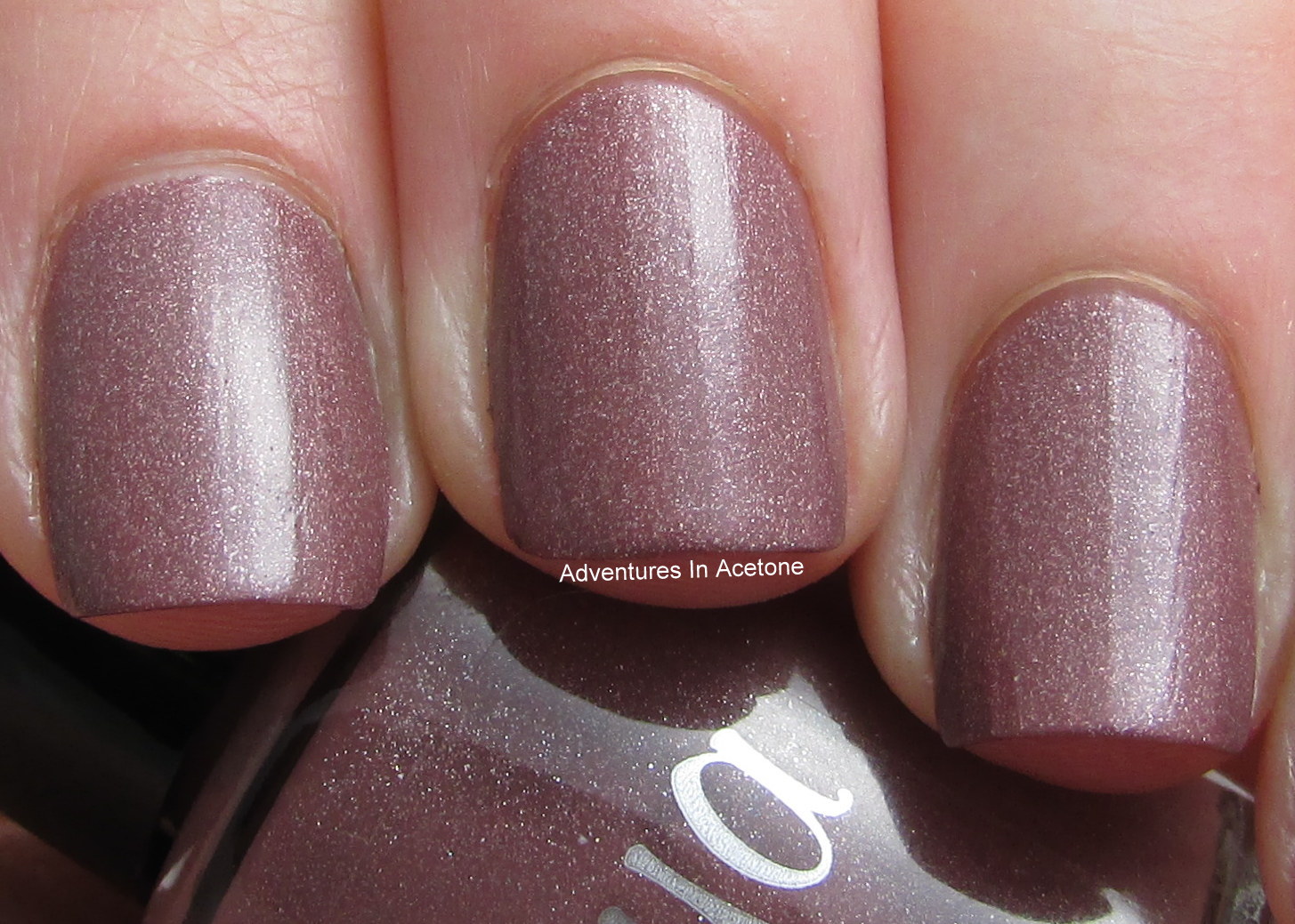 Let’s start out with Vintage. First things first, this is only ONE COAT you are seeing below. I can’t tell you how happy it makes me when I only need one coat of a polish. I’ve heard that you can stamp with it as well, so you know I will be trying that in the future. Also, it is another scattered holo that my camera doesn’t want to share with you (greedy camera, keeping the prettiness all to itself). “Faded plum with silver shimmer and subtle scattered holo.” I love this, showing one coat with no top coat below.