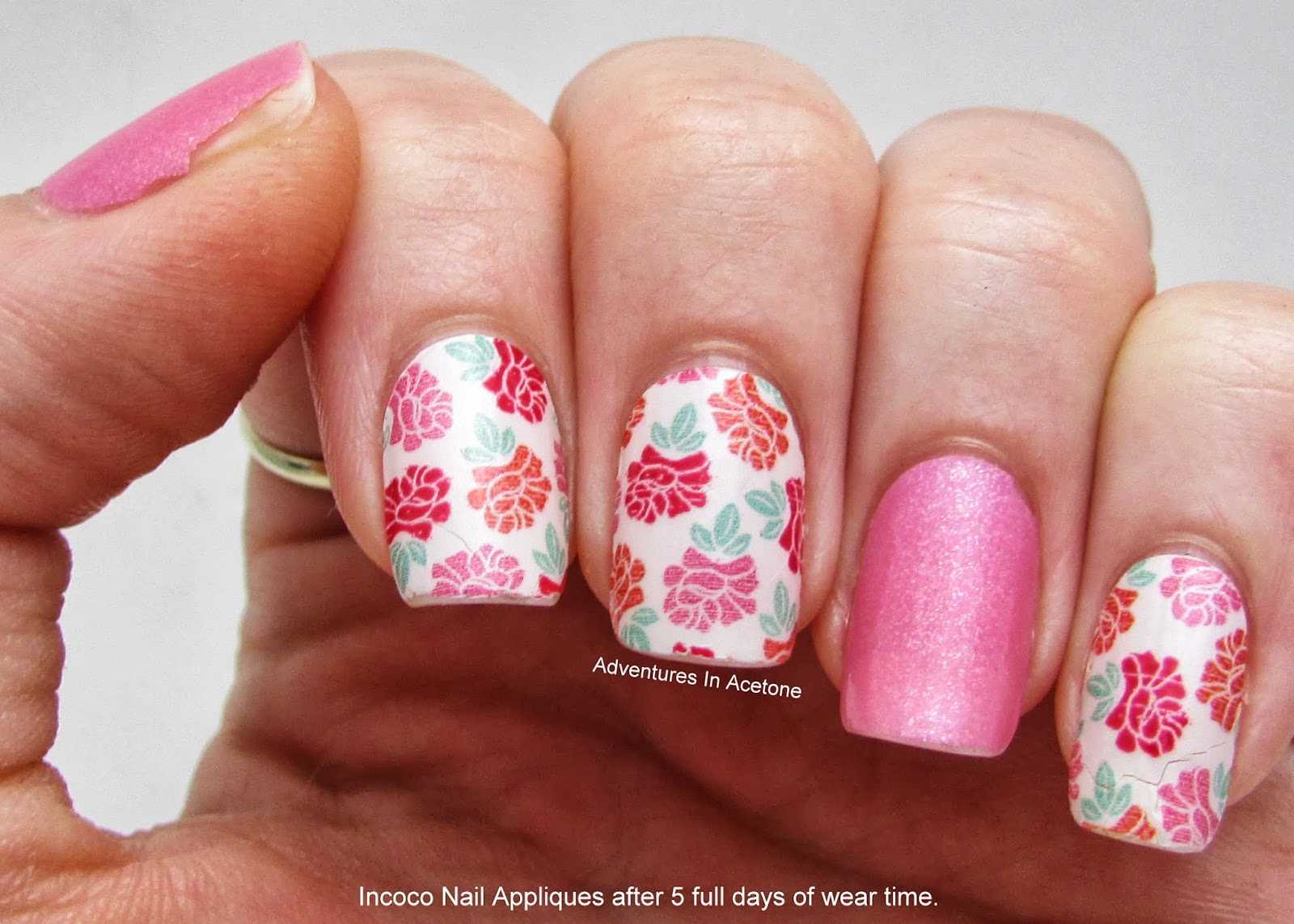 I wore these for about 6 days! I had a very busy week so it worked out really well and I was able to get a wear-time photo for you after 5 full days. 9 of my nails just had tip wear and one had a chip. WAY better wear time than polish on my nails!