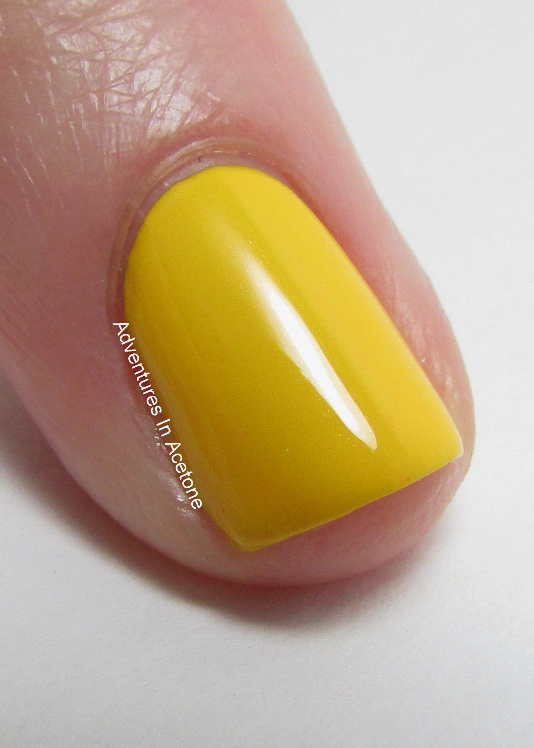Canary is a yellow with subtle shimmer. It did need three coats to full coverage so that’s what I’m showing below with top coat.