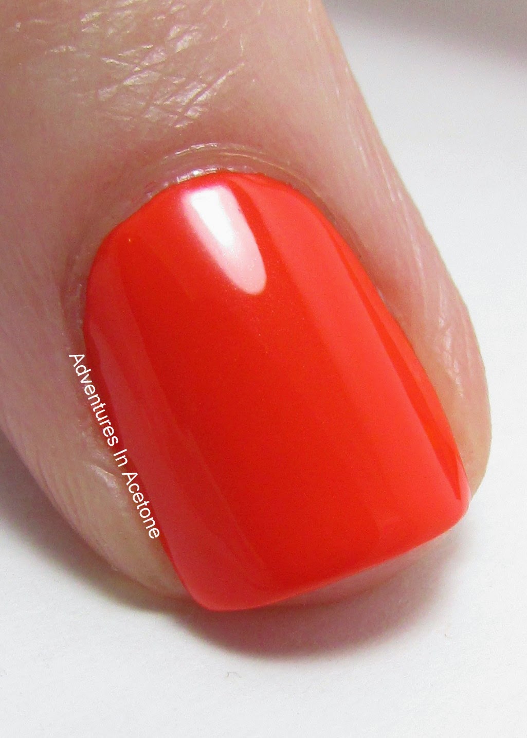 Scarlet Ibis is an orange red with subtle shimmer. This was highly pigmented. It could be a one coater but I’ve done two here with top coat. No issues to report.