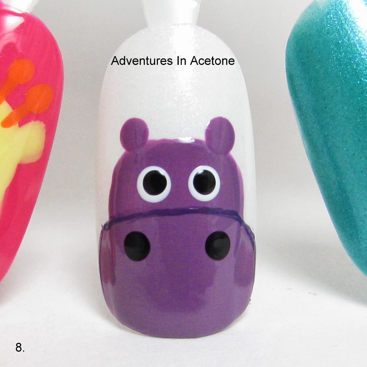 Hello, readers! It’s time for another tutorial! This week’s is on the hippo nail art I did for the Digit-al Dozen Animal Week a couple of months ago.
