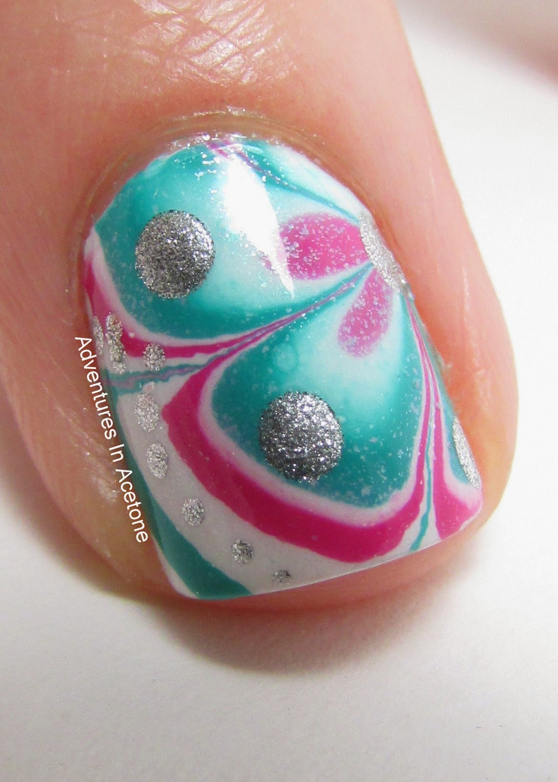 - I went back in with 2 dotting tools and Milani Silver Stilettos to add some silver dot accents.