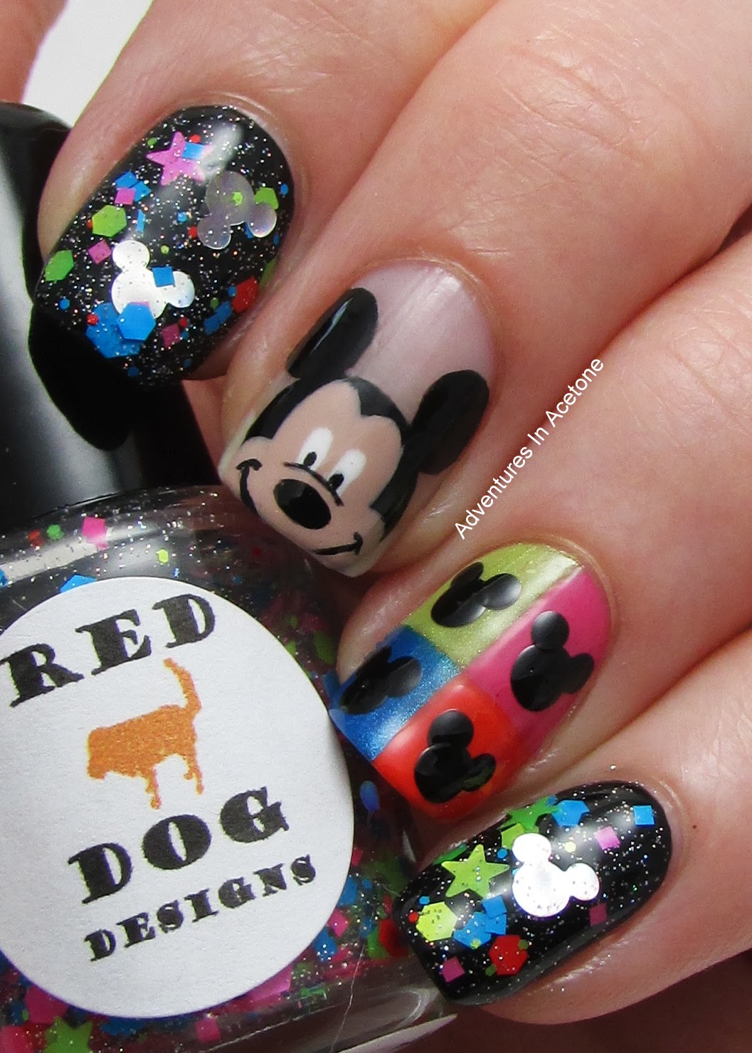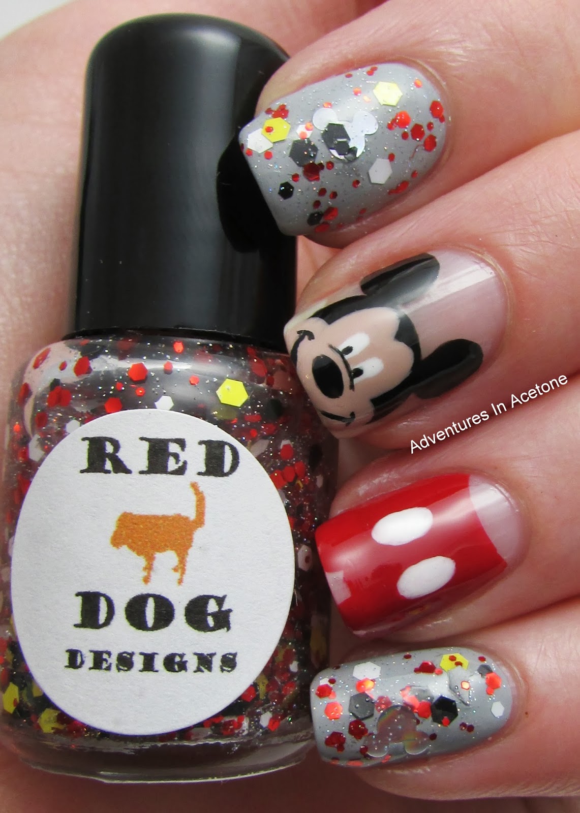 Yay! Thank you so much. I admire your mad talent skills! Red Dog Designs got very lucky you added such pizzazz to their glitters with your terrific artwork.Thanks again for letting me know what polish you used…it was the perfect choice for Minnie's sweet hair bow and bloomers. 🙂