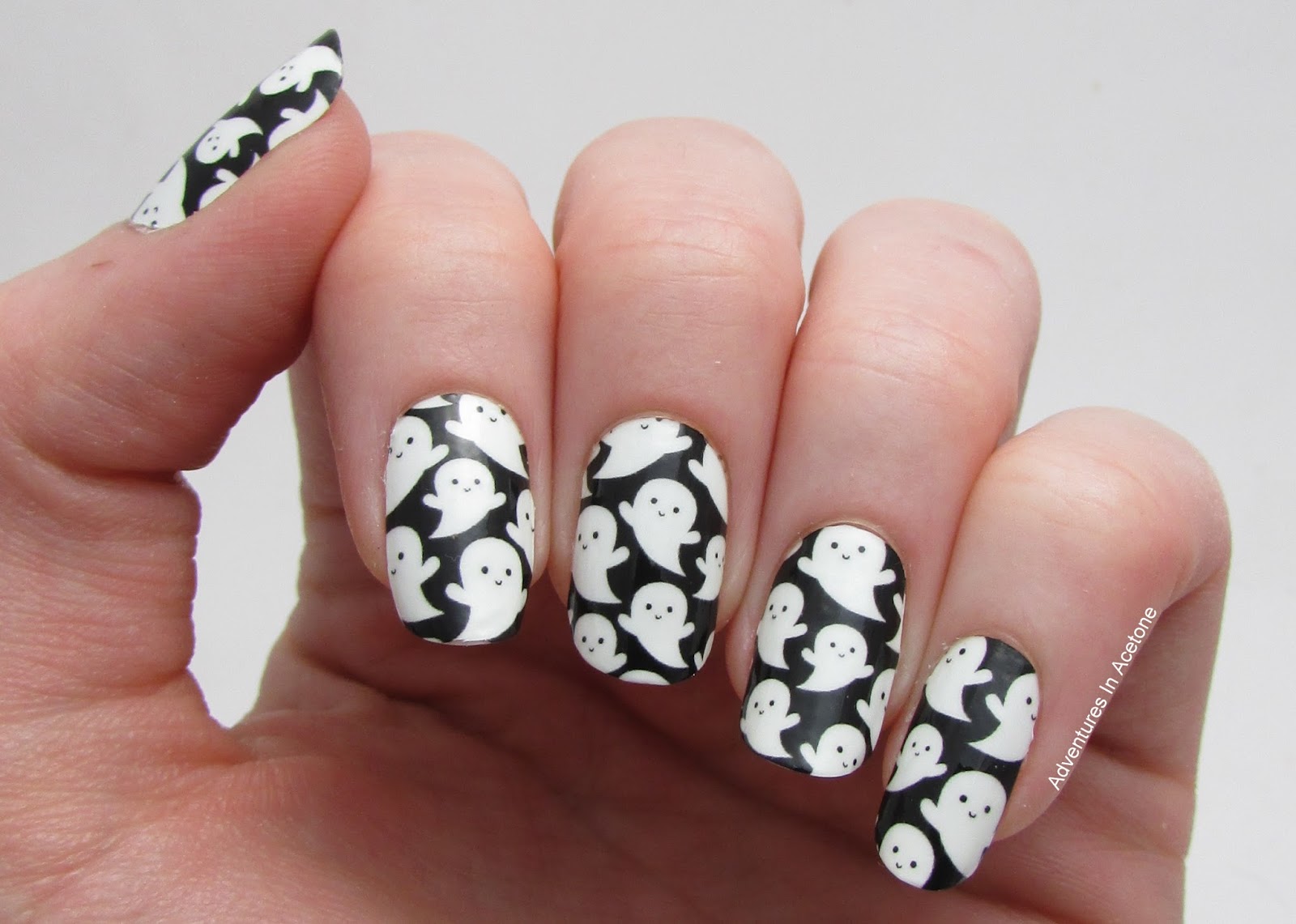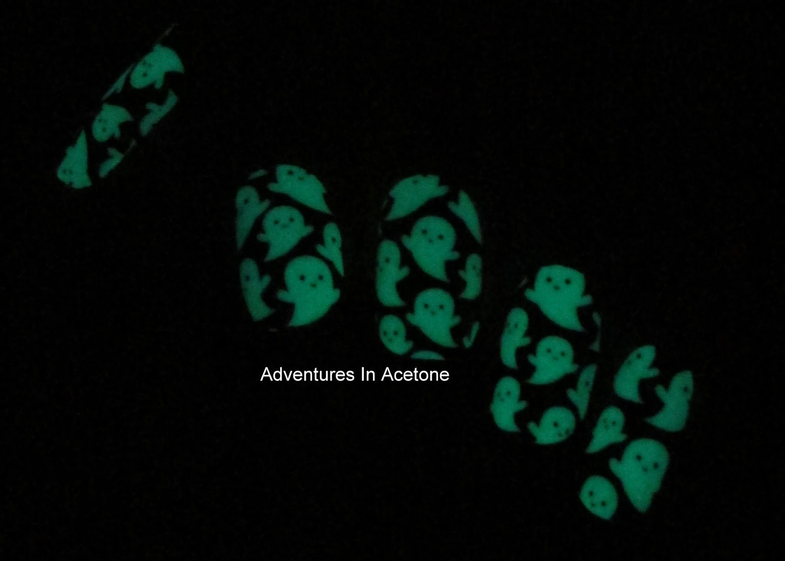 These 2 designs are super cute Halloween characters and they GLOW IN THE DARK like nothing I’ve used before. They glowed so well, I was sitting on my couch one evening with the hubby watching tv and we had our tall lamp on in the room and my nails were SO bright green, I couldn’t believe it!